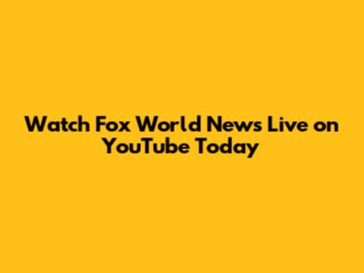 Watch Fox World News Live On YouTube Today