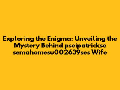 In the vast and ever-expanding universe of the internet, certain names and phrases capture our attention, sparking curiosity and intrigue. One such enigmatic string is "pseipatrickse semahomesu002639se's wife." This peculiar combination of characters and words piques our interest, leading us to embark on a quest for answers. Who is this person, and what is the story behind this unusual identifier? Let's dive into the depths of the digital realm to unravel the mystery and shed light on the subject.