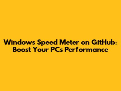 Windows Speed Meter On GitHub: Boost Your PC's Performance