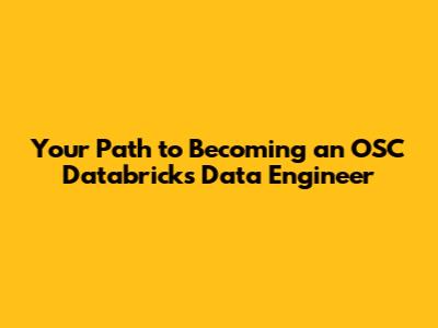 Your Path To Becoming An OSC Databricks Data Engineer