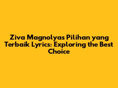 Ziva Magnolya's 'Pilihan Yang Terbaik' Lyrics: A Deep Dive